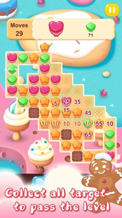 3.在游戏过程中,不断消除相同形状的蛋糕,会触发出丰富多彩的特效和音效,让游戏更加具有声光效果和视觉效果。