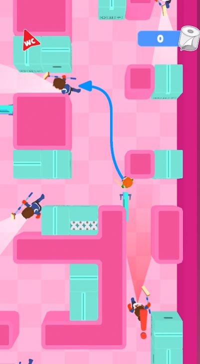 3、现场充满了乐趣,包括办公室、商店和健身房等真实场景。主角需要避开障碍物,收集加速道具,并计划最短的路径尽快到达洗手间。