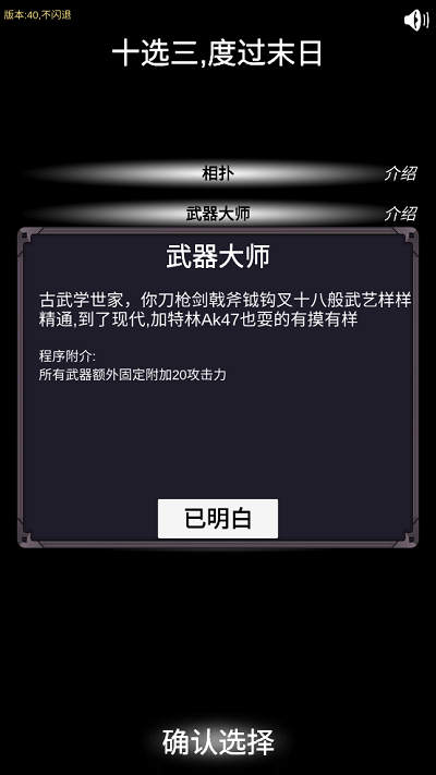 1、游戏背景模拟了世界末日,选择一些需要的属性后,你就可以开始你的世界末日冒险了。