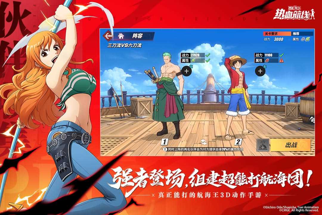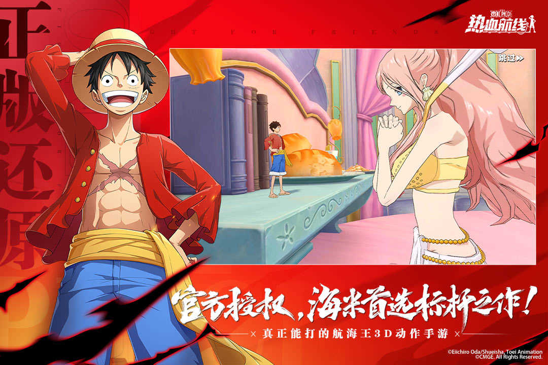2、玩家可以跟随原著主线一路重温剧情,招募原著伙伴,进行3D即时战斗,释放酷炫技能,经典高光战场由你主导!