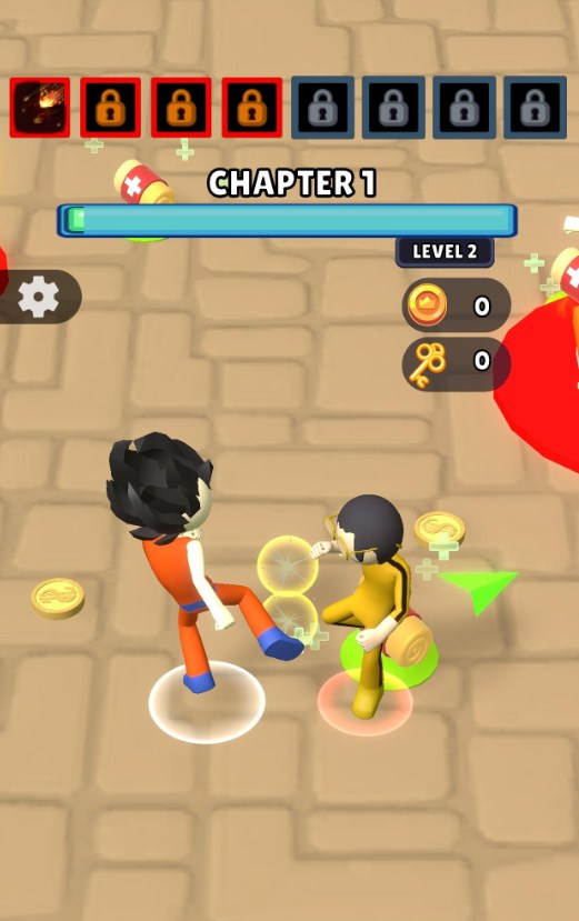 1、准备好在冠军争霸战中,以最强大的火柴人战士参加一场史诗般的竞技,尝试击败所有对手;
