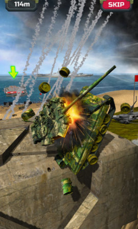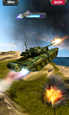 3、通过游戏进度可以赚取金币,金币可以兑换道具和新的强大坦克,不断提高自己的能力和跳跃高度。