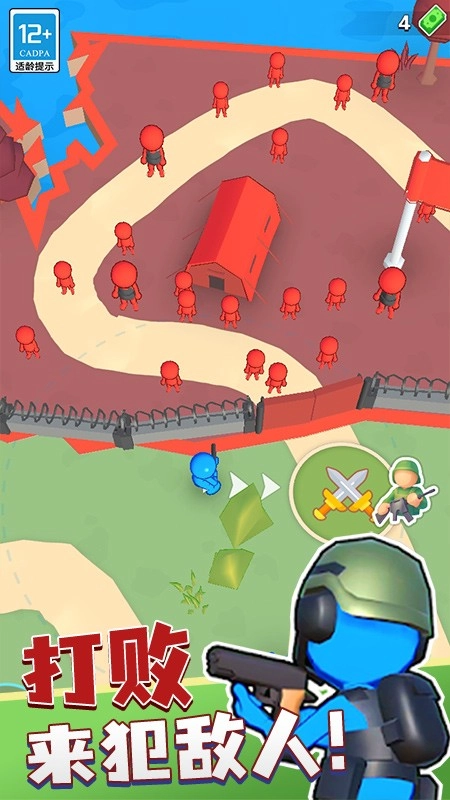 1、所有的士兵都可以增加他们的数量,你的所有士兵都可以升级。解锁不同类型的士兵!