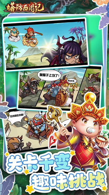塔防西游记免费版内购是一款经典西游题材的手机塔防游戏,塔防西游记无限元宝版中,画面清新卡通,人物Q萌可爱,玩法精彩丰富,玩家不但能够享受收集乐趣,体验不一样西游之旅,同时,还能呼朋唤友,结伴而行。