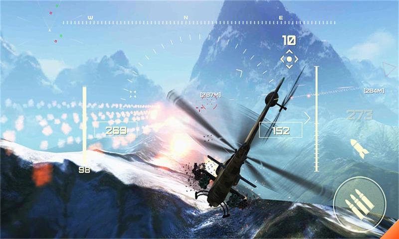 1、游戏风格简洁清新,刺激流畅,驾驶直升机完成各种任务和挑战,各种武器都可以使用!
