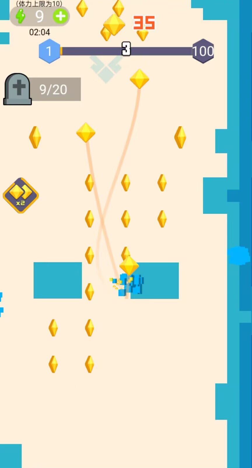您可以通过滑动向前移动,滑动时请注意块的位置和障碍物。