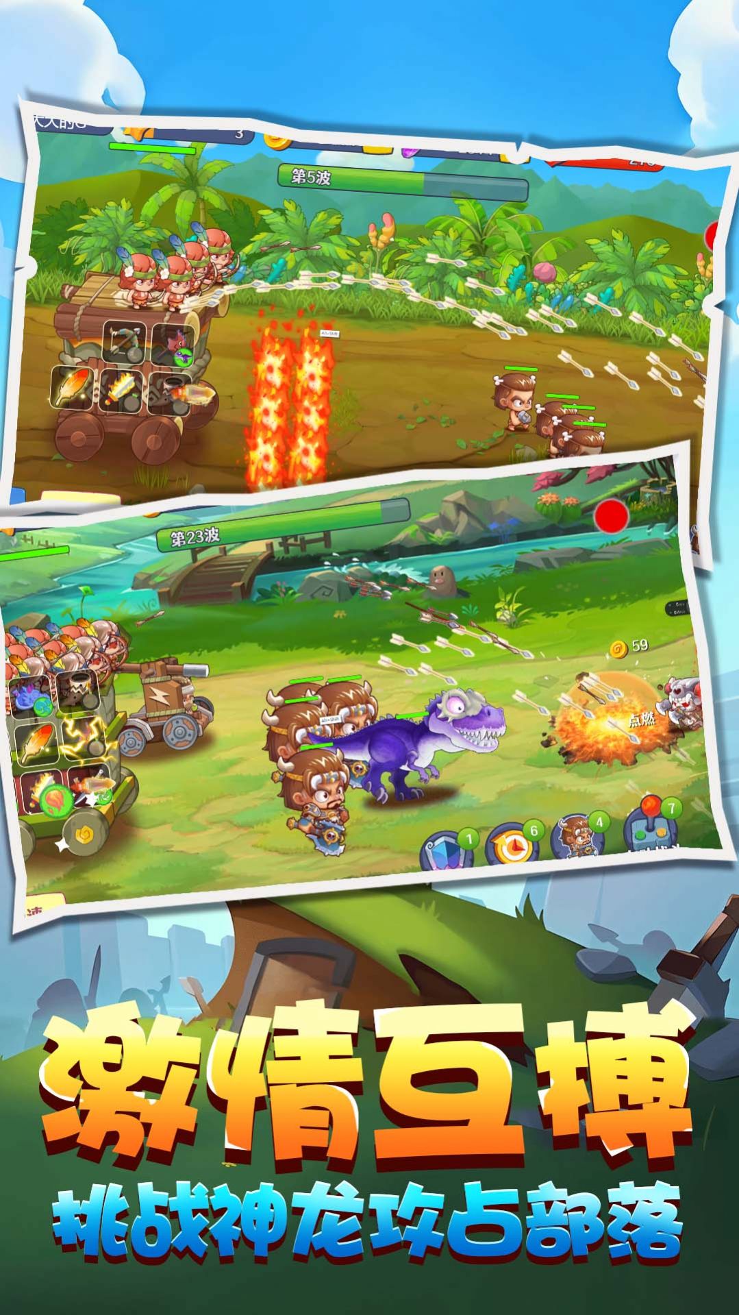 野蛮人进化贼溜是一款蛮荒恐龙世界的放置塔防类游戏,玩家需要建设自己的部落,并且打造强力防御塔,保护家园的安全。同时还可以驯服凶猛的恐龙帮助自己完成激烈的放置塔防对战,Q版的可爱卡通画面之中,也会为玩家带来更多精彩的视觉效果,还有超多福利等你领取,快速发展自己部落的塔防力量吧。