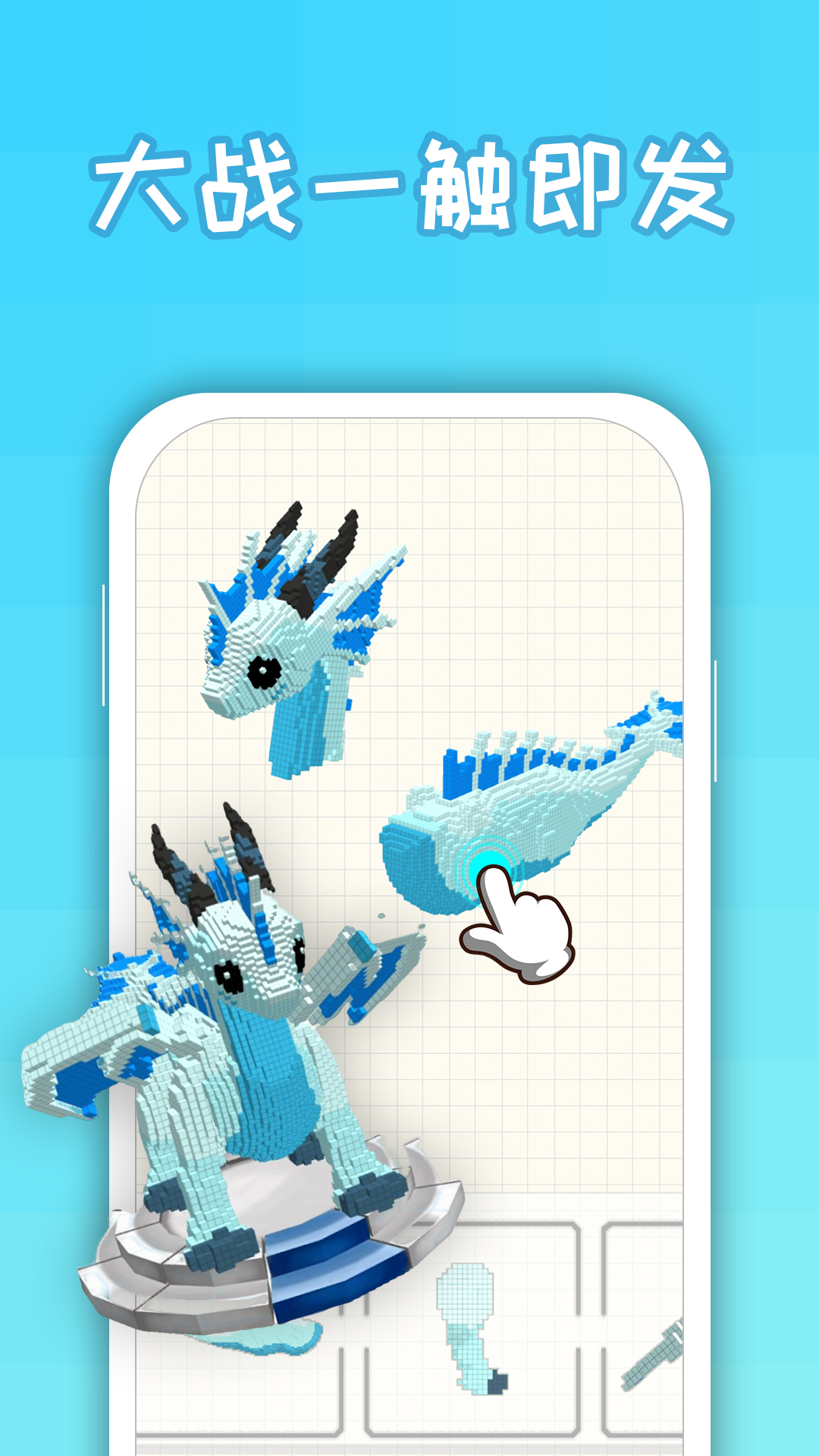 3、使用给出的积木方块, 用指尖在屏幕中滑动控制上方的方块进行各方位旋转。