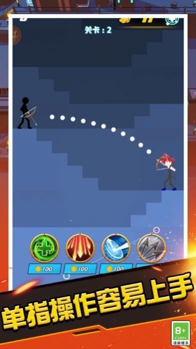 1.火柴人开启一系列的射击战斗,这里还有更多的武器可以选择,就可以拉弓射箭消灭敌人。