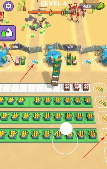 2、玩家需要不断合成升级,击退来袭的小兵,更多小兵怪物入侵,策略合成炮塔来闯关。