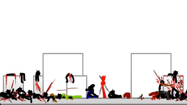 3、模拟火柴人战场,集合组建军队,使用刀剑棍棒等武器加入战场。