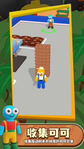 1、管理你的巧克力工厂,成为巧克力大师,顾客在等你美味的巧克力,摇动树木并掉落可可豆荚,收集可可并将其放入机器中以获得更多巧克力。