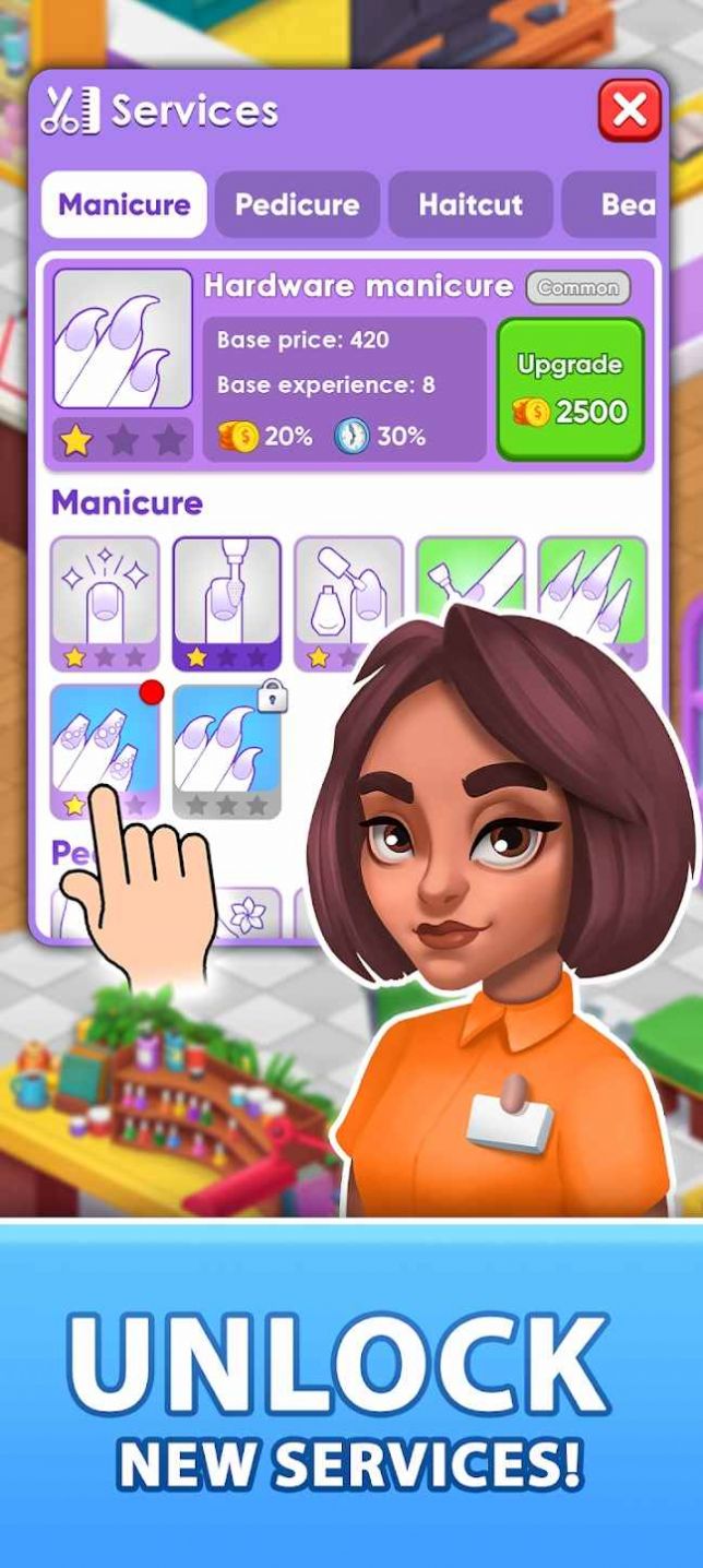 玩家将为顾客提供不同的服务,通过关卡可以不断解锁更多的美丽。