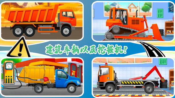 轻松玩转各种类型的机械车,帮助小朋友掌握各种机械车的使用方法;