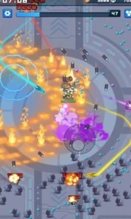 2.选择具有不同能力的机甲,提防来袭的敌人,自动释放技能击败敌人以获得升级经验。