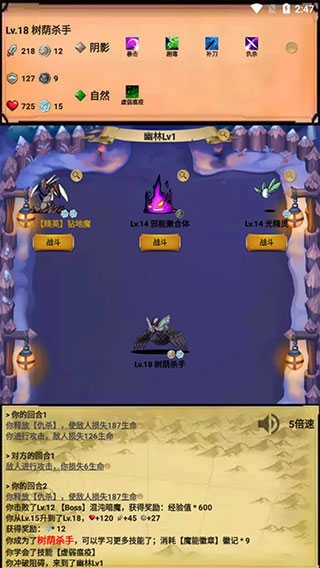 4、战斗结束升至Lv.2后,点击调整为【5倍速】,以此加速战斗进程,高效推进裂谷Lv2的挑战。