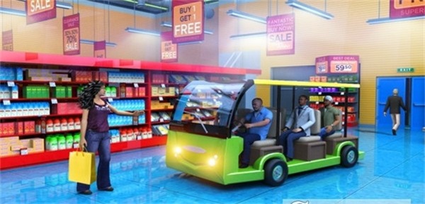为做准备:超级市场带来未来旅行购物中心出租车驾驶模拟器冒险。