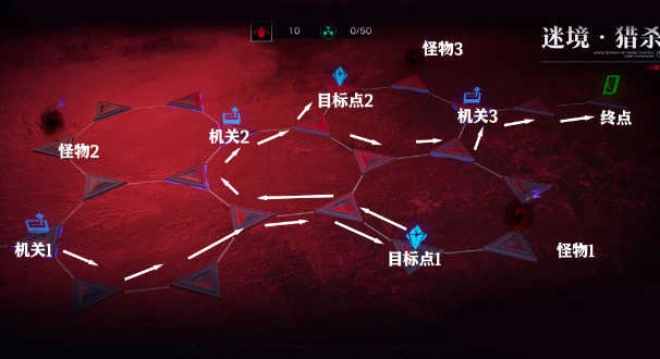 若想以最快速度通关,可径直依照“目标点1 - 目标点2 - 目标点3 - 终点”的顺序来进行解密。