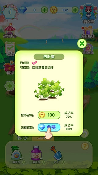 4、把四叶草种子拖至相应的地块,完成【种植】操作。