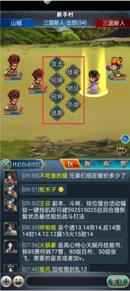 5、与山贼交战时,依据敌人实力点击中间按键予以反抗。