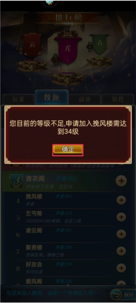 3、需要注意的是,只有当你的等级达到34级时,才拥有申请加入教派的权限。