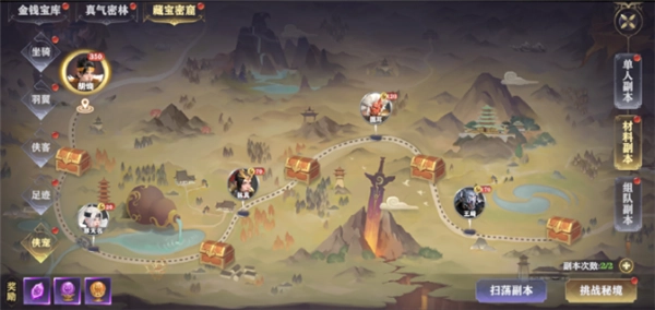 激活侠宠功能,投身藏宝密窟的侠宠副本,获取侠宠外观与培养材料,大幅提升战力。