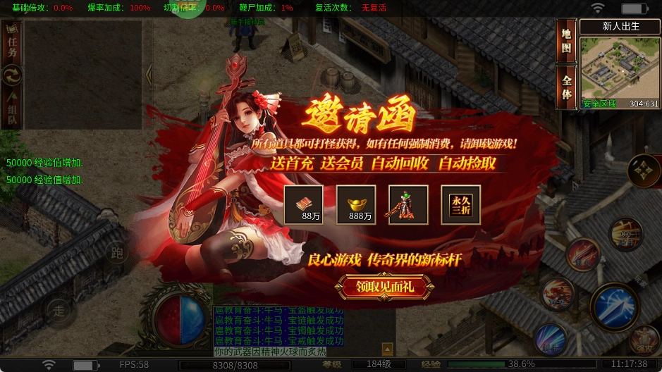 4、打怪中掉落的物品,点击即可穿戴。