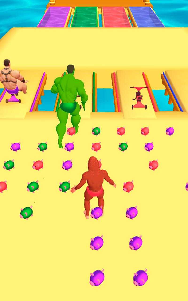 肌肉力量竞赛(Muscle Power Race)这款游戏主要是动作闯关的类型,玩家在游戏中主要是操控角色进行不断的去跑酷,在跑酷的过程中还会有很多的对手,只有超过所有的对手,然后取得第一名才算是完成任务,游戏的难度后面会大大的增加,所以整个过程都是比较有挑战性的,不过这样玩下来才最有意思。