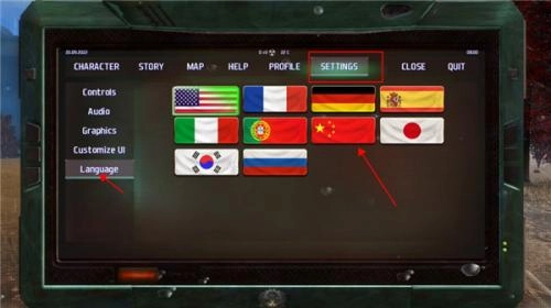2、选择“SETTINGS”然后选择“Language”,选择中国国旗。