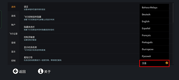 四大选项的下方设有五个小选项:其中Logbook用于查看积分与勋章,积分在每次飞行结束后就能获得,勋章可通过点击Achievements查看,点击ok则是返回操作。