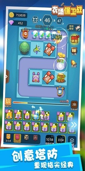 农场保卫战这款游戏,融入了合成升级的玩法,玩家可以解锁威力强劲的炮台,还能研发各类科技来增强炮塔的火力。游戏里有个性装饰可供搭配,完成关卡挑战就能解锁更多内容。作为一款创意十足的塔防游戏,它能让玩家重温指尖上的经典操作,需要巧妙布置防御来阻挡敌人的偷袭与进攻,还有海量关卡等待玩家去一一攻克!