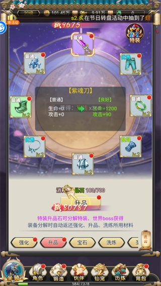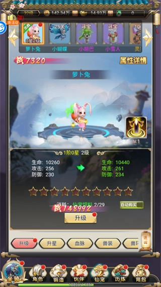 A:灵宠能增加战力,可上阵一只,助战五只;灵宠的属性和角色属性相同,都能借助丹药提升。