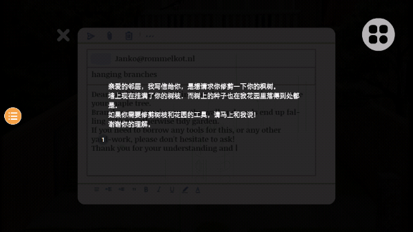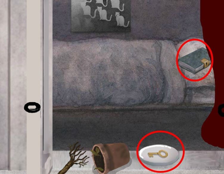 点击左上角的窗户将其打开,在窗户尚未关闭时点击老鼠,使其砸坏盆栽,随后获取钥匙打开笔记,从中得到提示。