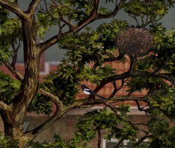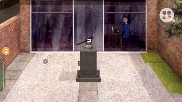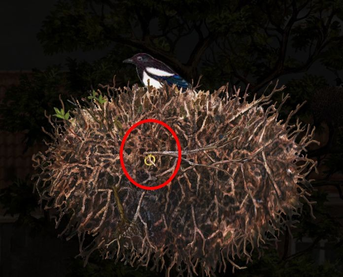 回到全景视图,点击窗户旁的树枝切换到鸟巢位置,再点击喜鹊,就能让耳环显现出来。
