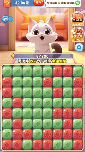 在《喵喵之王》里,新玩家能领到不少新人红包福利,要是看看广告、每天签个到,还能额外拿到红包奖励。游戏的消除玩法特别简单,很适合利用碎片时间玩,不管是上下班路上,还是在家歇着的时候,都能轻松玩起来。另外,红包攒得也挺快的,玩家不用等太久就能达到提现要求,这种能马上拿到回报的设定,让玩游戏的过程更有意思了。