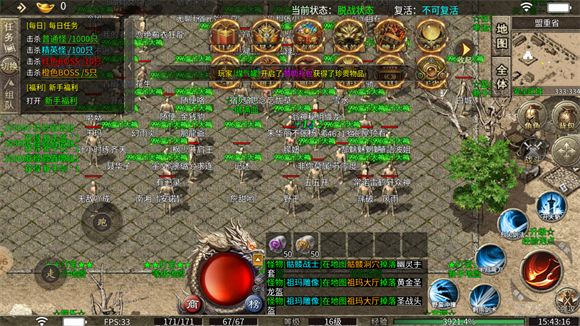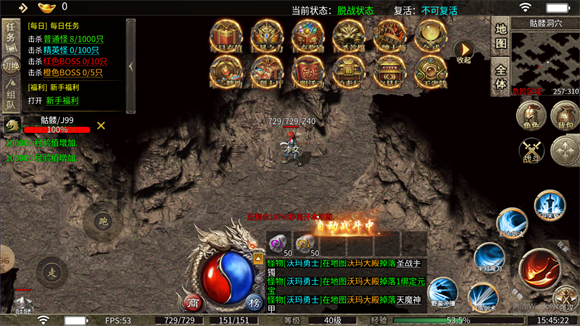 三职业复古设计:游戏内设有战士、法师、道士这三种经典职业,每个职业都具备独特的技能体系与玩法机制。
