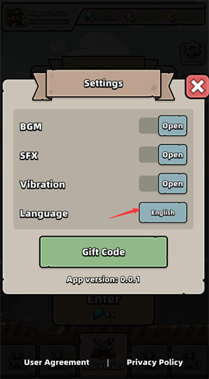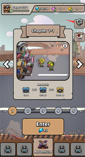 进入游戏之后点击右上角的setting按钮