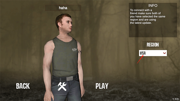 6、当好友加入房间且处于角色界面时,需将右侧的地区设置调整为与好友相同的地区。