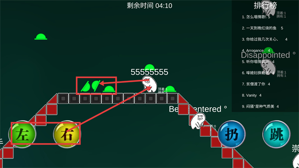 2、当遇到其他选手时,可根据自己拥有的绿色帽子数量,点击【扔】按钮将帽子强制给予对方。