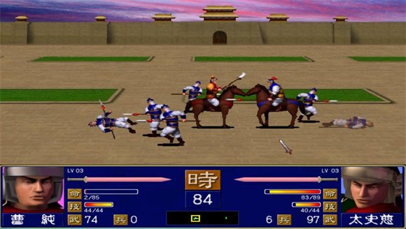 6、游戏中每位武将的武将技各有差异,其种类数量由先天属性决定,后天训练也至关重要。游戏初始阶段,每个武将都具备一种必杀技,例如张飞的鬼戟、关羽的半月斩。后续几乎每打赢一场战役就能提升一级,当等级达到10级和20级时会进行转职,此时有3种职位可供挑选。不同职位对应的必杀技各不相同,威力自然也各有高低。部分必杀技能为自身补充体力值,有些能歼灭敌方大量小兵,还有的可对敌方武将造成沉重打击。武将必杀技的威力强弱往往会影响一场战争的最终结果,所以如何进行转职是游戏里颇为关键的一项内容。武将技除了常见的针对武将和士兵的类型外,还包含诸多特殊技能,像补血、埋伏、封印等。