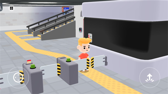 7、进入后左侧控制角色移动,右侧控制跳跃,将角色移动至下方大厅并进入列车,即可进入城市。