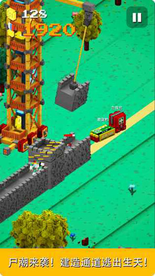 1、僵尸围城时,通过建造通道带生还者逃出生天;