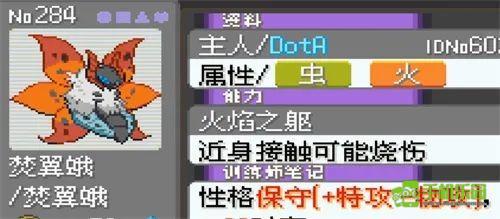 它是燃烧虫的进化形态,性格偏向保守,特性为火焰之躯,玩家在前往流星瀑布的路上经过热焰小径时能够遇到它。