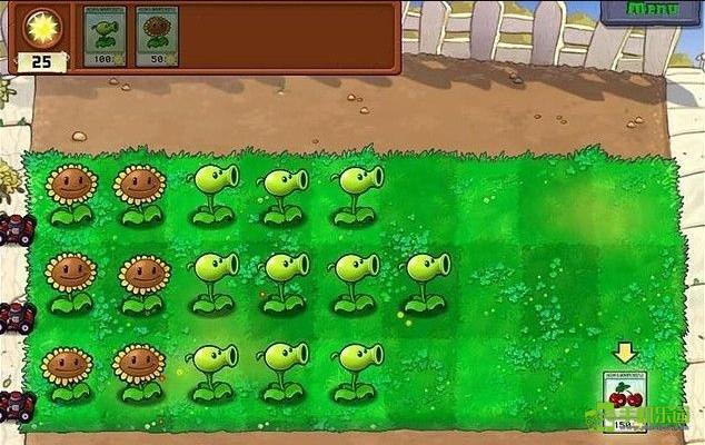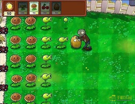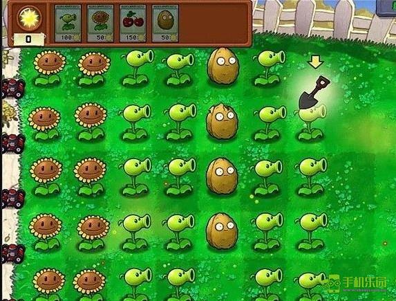 先种上5株向日葵。这一关卡里塑料材质的僵尸数量不少,有两株豌豆射手就足够应对了。要是想更稳妥些,也能种几个墙果来阻挡僵尸前进的路径。