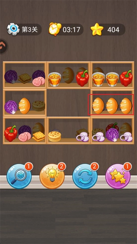 2、玩法简单:只要把相同图案移到同一个货架上就能消除