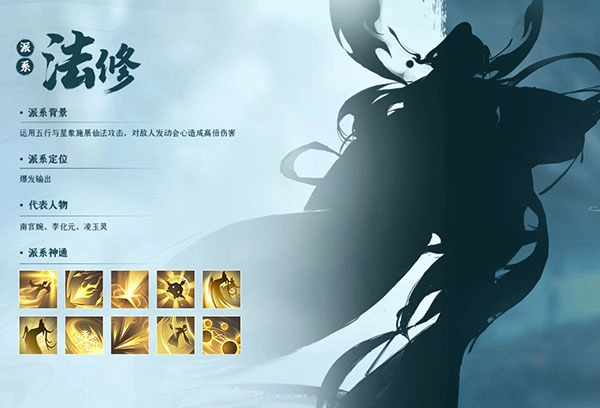 其主要特点为运用五行与星象施展仙法攻击敌人时发动会心造成高倍伤害。修行大体分为五行术法、五行真雷、星灵真光、玉书天星。