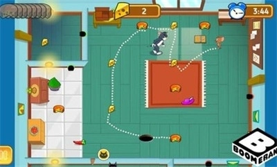 1、玩家需要操控小老鼠一路躲避猫咪的追捕,尽可能收集更多奶酪,同时帮助老鼠杰瑞摆脱汤姆猫的追击。