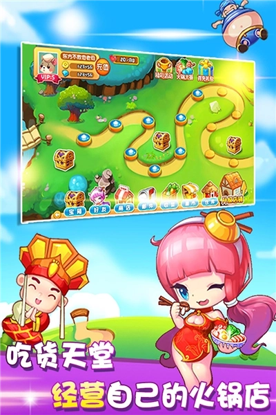 在《开心火锅店》的游戏世界里,你可以亲手制作各种各样的火锅美味,无论是经典的麻辣锅底,还是充满创意的海鲜锅底,这里都能找到。游戏设置了多样的关卡,每个关卡都有独特的挑战和对应的奖励等你来体验。此外,游戏还融入了好友系统、交易系统和紧张刺激的PK竞赛,让你在经营火锅店的同时,既能结识新的朋友,也能和其他玩家比拼较量一番。