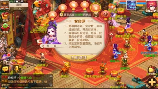 玩家能够在姻缘童子那里购买七彩烟花,通过燃放绚烂的焰火来庆祝典礼,还可以发表祝福语,为幸福的新人送上美好祝愿。