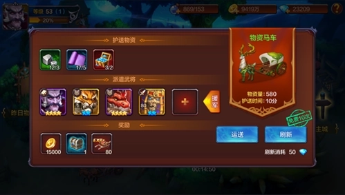 当然啦,大部分时候随机匹配到的都是些低级马车,给的奖励也不算多。要是觉得不划算,不妨试试刷新物资需求——不过刷新得消耗钻石。好在每3小时系统会送一次免费刷新机会,最多能攒到10次。好好利用这些机会,能让护送任务更有效率呢!